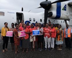 Members of Solomon Airlines team dressed in orange today, to show their support for the United Nations International Day for the Elimination of Violence Against Women.
