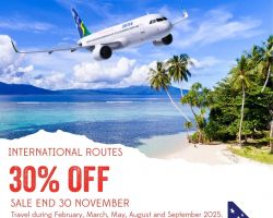 Solomon Airlines is offering exclusive discounted fares of up to 30% off their normal lowest year-round return airfares with their latest Earlybird Sale for travel in February, March, May, August and September 2025 and sale until 30 November 2024.